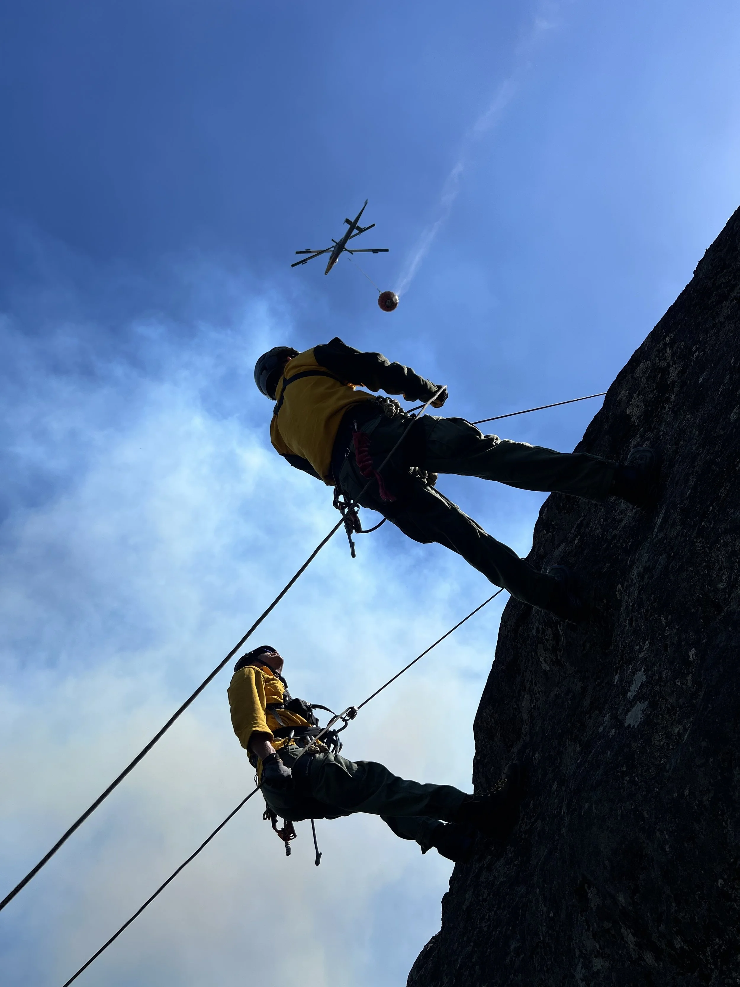 Remote Medical Rescue utilizes rope rescue capabilities to support safe medical access, provider protection, and controlled patient movement in steep, exposed, and remote environments encountered during wildland fire and all-hazard incidents. Rope rescue operations are conducted at either the Light Technical Rope Rescue or Heavy/Technical Rope Rescue level based on terrain, exposure, and patient needs, with an emphasis on risk reduction, system simplicity, and operational integration. All rope operations are performed by trained personnel, utilize redundant anchors and edge management, and are integrated into LCES, fire behavior considerations, and incident objectives, with patient and responder safety prioritized over speed or complexity.